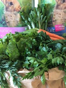Unsere Kaninchen werden täglich mit viel frischem und abwechslungsreichem Grünfutter, Bambus, frischen sowie getrockneten Kräutern und Blüten, hochwertigem Futter von Grünhopper, Saaten sowie Bio-Heu vom Samerberger Heustadl – unsere Kaninchen lieben es – und Stroh versorgt.